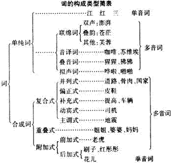 词是最小的能自由运用的语言单位,它是由语素构成的,语素有单音节的,有双音节的,有多音节的。由一个语素(包括单音节,双音节,多音节)构成的是单纯词。由两个或两个以上的语素构成的是合成词。