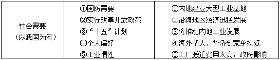 | 交通运输和信息通达性的影响增强 | ①原料的运人、产品的运出都离不开运输; ②产品的更新换代周期缩短,对运输的时效性要求提高 |