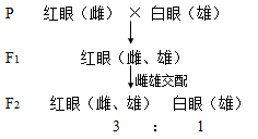 c、F2中红眼:白眼=3:1??符合分离定律,红眼和白眼受一对等位基因控制;
