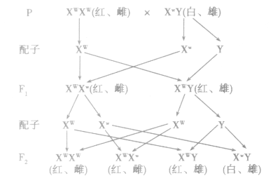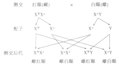②假设与解释假设控制果蝇白眼的基因(用w表示)位于X染色体上,而Y染色体上不含有它的等位基因,其遗传图解可表示为:
