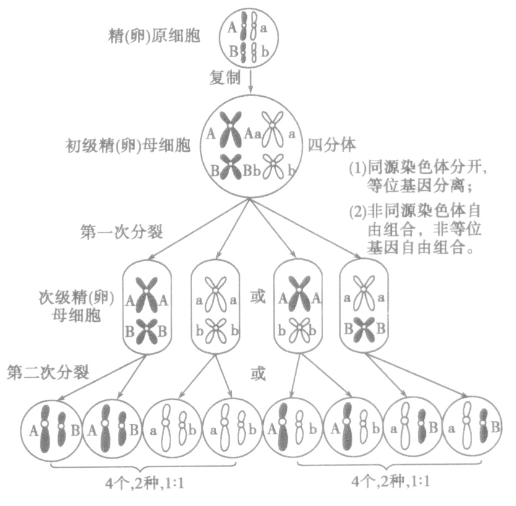 (2)在减数分裂过程中,同源染色体上的等位基因彼此分离的同时,非同源染色体上的非等位基因自由组合。