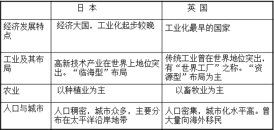 (1)相似性:都是发达的工业化国家,经济发展水平都比较高,经济发展过程中都发挥了岛国的优势。