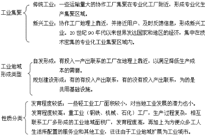 ③形式:工业集聚的形式多样,原因、结果也不相同,但主要表现为传统工业的集聚和新工业的集聚。
