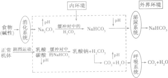 ①概念:血液中含有许多对对酸碱度起缓冲作用的物质,也叫缓冲对,如NaHCO3/H2CO3、Na2HP04/NaH2PO。