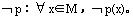 ③“存在M中的一个x0,使p(x0)成立”的命题,记为?x0∈M,p(x0),读作“存在一个x0属于M,使p(x0)成立”。