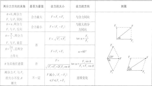 ③合力可能大于任何一个分力,也可能小于任何一个分力,也可能介于两个分力之间。