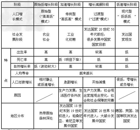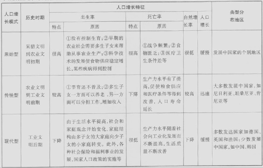 又称人口在生产类型,反应不同国家和地区人口出生率、死亡率、自然增长率随社会经济条件变化而变化的规律。不同的国家和地区,其人口增长处于不同的阶段,体现了人口增长由高出生率、高死亡率、低自然增长率向低出生率、低死亡率、低自然增长率转变的过程。