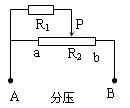 2、分压电路是将电源和可变电阻的总值串联起来,再从可变电阻的两个接线柱引出导线。如图,其输出电压由ap之间的电阻决定,这样其输出电压的范围可以从零开始变化到接近于电源的电动势。在下列三种情况下,一定要使用分压电路: