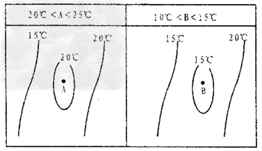 暖流经过 | 气温高 | 向高纬凸出 | 寒流经过 | 气温低 | 向低纬凸出 |
