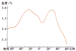 从南北半球的副热带海区分别向两侧的高纬度和低纬度递减。(如下图)