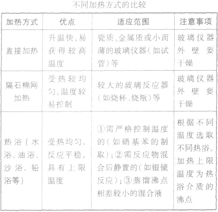 (10)给试管加热时,不要把拇指按在短柄上;切不可使试管口对着自己或旁人;液体的体积一般不要超过试管容积的1/3。