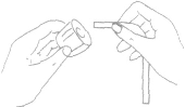 取用同体药品一般用药匙。有些块状的药品(如钠、钾、磷)可用镊子取用。用过的药匙或镊子要立刻用干净的纸擦拭干净,以备下次使用。往试管里装入同体粉末时,先使试管倾斜,把盛有药品的药匙(如图 A)或用小纸条折叠成的纸槽(如图B)小心地送入试管的底部,然后使试管直立起来,让药品全部落到试管的底部。把块状的药品或密度较大的金属颗粒放入玻璃容器时,应该先把容器横放,把药品或金属颗粒放入容器口以后,再把容器慢慢地竖立起来,使药品或金属颗粒缓慢地滑落到容器的底部,以免打破容器。
