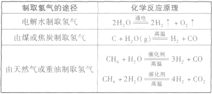 ②氢气的制备氢气主要来源于水和碳氢化合物。氢气的制取有下表中的几条途径。