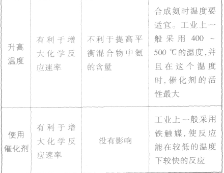 (5)合成氨的反应为放热反应,降低温度促使平衡向有移动,有利于N2、H2转化为NH3;但降温必然减缓了反应速率,影响单位时间产率。生产中将二者综合考虑,既要保证N2、H2的转化率,又要保证较快的反应速率,只能选择适中的温度400~500℃左右。应注意该温度为催化剂活化温度,低于此温度,催化剂不起作用。