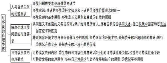 (3)环境问题的种种表现说明的问题人与自然的关系,同人与人的关系、人与社会的关系一样,需要伦理道德来调节。一方面,如果环境继续恶化、资源持续紧张,人与人、人与社会的和谐就难以实现;另一方面,如果人们没有形成正确的价值观、伦理观,就不能科学地认识和调节人与自然的关系。