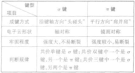 成键原子的电子云以“肩并肩”方式形成的共价键,其特征是镜像对称,即:电子云由两块组成,若以包含原子核的平面为镜面,两块电子云互为镜像。