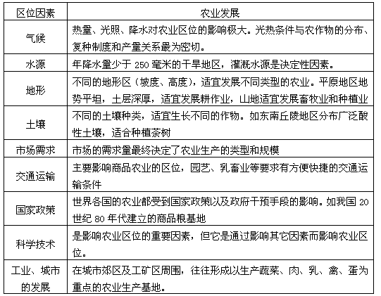 相关高中地理知识点:农业区位因素及其变化