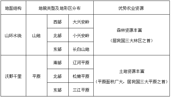 农业生产具有区城性特征。影响一个区城农业发展大方向的区位因众既有自然条件,又有社会经济条件。东北地区独特的地理条件使其成为我国重要的商品粮基地、林业生产基地和畜牧业生产基地。