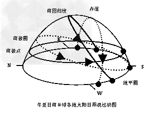 | 冬至 | 南回归线 | 南回归线正午太阳高度为90°,由南回归线向南北两侧递减 |