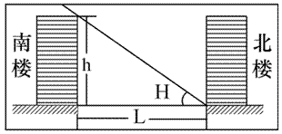 纬度较低的地区,楼距较小,纬度较高的地区楼距较大。以我国为例,见下图,南楼高度为h,该地冬至日正午太阳高度为H,则最小楼间距L=h?cotH。