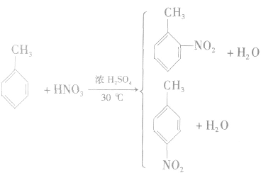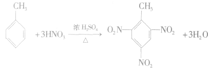 ②苯的同系物的硝化反应,甲苯跟浓HNO3和浓H2SO4的混合酸可以发生反应,苯环上的氢原子被硝基取代,可以发生一硝基取代、三硝基取代等。