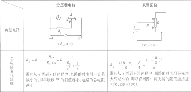 当电路中元件的阻值增大时,可将其阻值增大到无穷大,按断路状态去讨论;当电路中元件的阻值减小时,可将其阻值减小到零,按短路状态来讨论。因变阻器滑片滑动引起电路变化的问题,可将变阻器的滑动端分别滑至两个极端去讨论。但在分压器电路、双臂回路中要注意可能会出现的非单调变化。即在分压器电路、双臂回路中要慎用极限法。