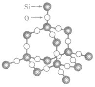 二氧化硅晶体的结构若在硅晶体结构中的每个Si—Si键中“插入”一个氧原子,便可得到以硅氧四面体 (SiO4)为骨架的二氧化硅的结构,如图所示。在二氧化硅晶体里,硅原子和氧原子交替排列,不会出现Si—Si键和O—O键,即每个硅原子与四个氧原子形成四个共价键,每个氧原子与两个硅原子形成共价键,因此,二氧化硅晶体中硅原子和氧原子的个数比为1:2,二氧化硅的化学式为SiO2.