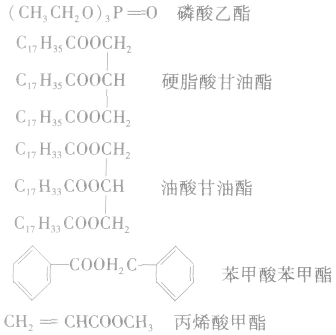 低级酯是具有芳香气味的液体,密度一般小于水,并难溶于水,易溶于有机溶剂。