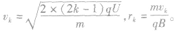 第k次进入左半盒时,经电场加速(2k一1)次,进入左半盒时速度和半径为