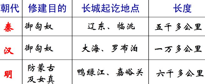 相关高中历史知识点:长城纵横十万里(长城的发展,春秋战国,秦汉,明)