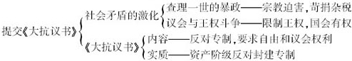 3.意义:《大抗议书》勾画出了一幅立宪君主制的蓝图,标志着斗争已深入到国家体制改革的深层领域。