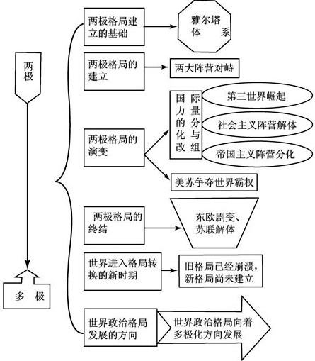 “冷战”是美国与苏联主动对抗的表现,是两极格局形成的主要导因,“冷战”的过程也就是两极格局形成的过程。多极化趋势在两极格局中孕育、发展,并不断侵蚀和破坏着雅尔塔体制下的两极格局。一般认为,两极格局的瓦解,也就意味着“冷战”局面的结束、雅尔塔体制的瓦解和多极化趋势的加强。