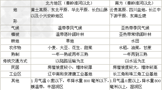 一、北方、南方地区