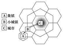 (2)中心地的服务范围:中心地按照其提供的货物(或服务)的等级排列成有顺序的等级系统。低级中心地的服务范围被高一级中心地的服务范围所包括,高一级的中心地的服务范围又被更高一级中心地的服务范围所包括。而相同级别的中心地的服务范围是彼此独立和排斥的。各级中心地最终会形成一个具有等级关系的空间结构系统。