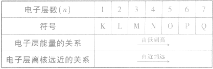 (4)核外电子分层排布,电子总是优先排布在能量最低的电子层里,然后由里向外,依次排布在能量逐渐升高的电子层里,即最先排K层,当K层排满后,冉排L层等。原子核外电子排布不是孤立的,而是相互联系的。层数相同而位置不同的电子层中最多容纳的电子数小一定相同,如N层为最外层时,最多只能排8个电子;N层为次外层时,最多只能排18个电子而不是32个电子(2×42=32)。