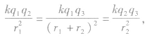 三个点电荷在相互间作用力作用下处于平衡时的规律
