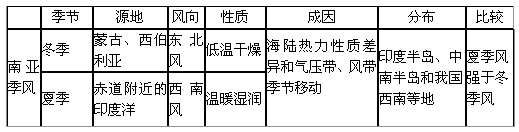 (2)南亚的西南季风是由于夏季东南信风带北移,越过赤道,在地转偏向力的作用下向右偏转而形成的。与之类似的是,澳大利亚北部1月份的西北季风,是由于东北信风带南移,越过赤道,在地转偏向力的作用下左偏而形成的。