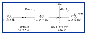(3)日期变更:抓住两个要点:确定180°经线确定0点或者24点所在的经线