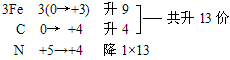 例:Fe3C+HNO3=Fe(NO3)3+CO2↑+NO2↑+H2O