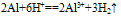 铝与酸反应:铝与浓硫酸在常温下发生钝化,2Al+6HCl==2AlCl3+3H2↑