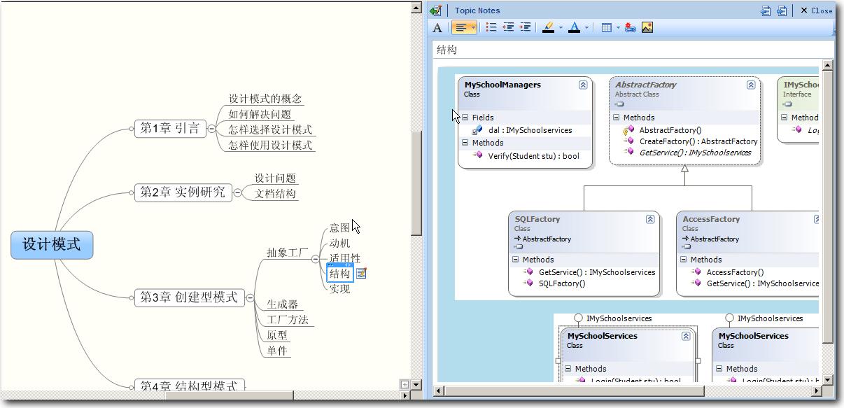 下面和大家分享一下学习公司类库的一些经验。 这段时间我要在公司其他系统中增加对新需求的支持,面临的其中一条压力就是我对公司这么多年积累下来的类库不熟悉,而这严重影响了我工作的效率。同时,由于这些类库的相应资料并不全,因此我必须自己找到快速学习的办法。而从大量的代码中找出脉络,思维导图派上了用场。下面是我做的关于公司工具类的思维导图,当然只是说明意思而已,在下图中我尽量避免传出公司的源码出去:) 下图中,左边是思维导图,右边是Memo,同样借助了MindManager的强大功能。