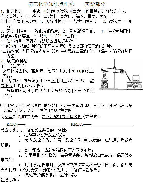 化学知识点梳理:实验部分》,供家长和同学们参考。